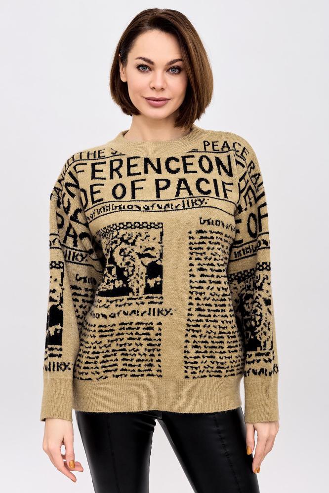 Уникальный, яркий джемпер выделит Вас среди других. Яркий и оригинальный принт в стиле газетных колонок и шрифт делает модель джемпера необычной и привлекательной. Теплый и в тоже время дышащий материал позволит чувствовать себя комфортно как на улице, так и в помещении. Красиво джемпер можно сочетать как с брюками, так и с юбками.