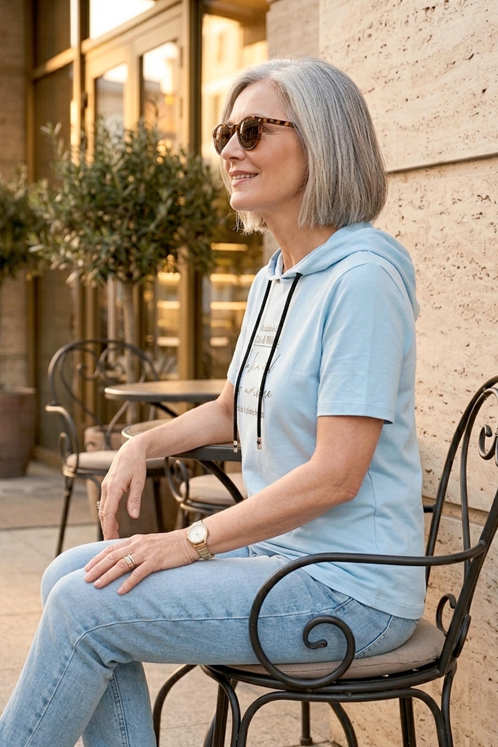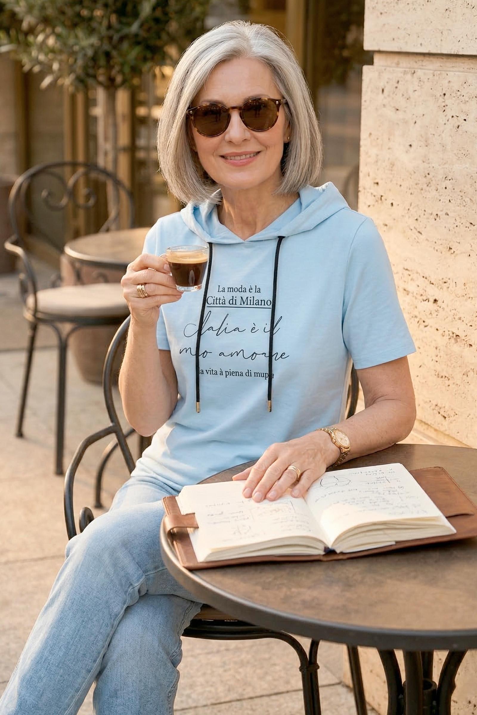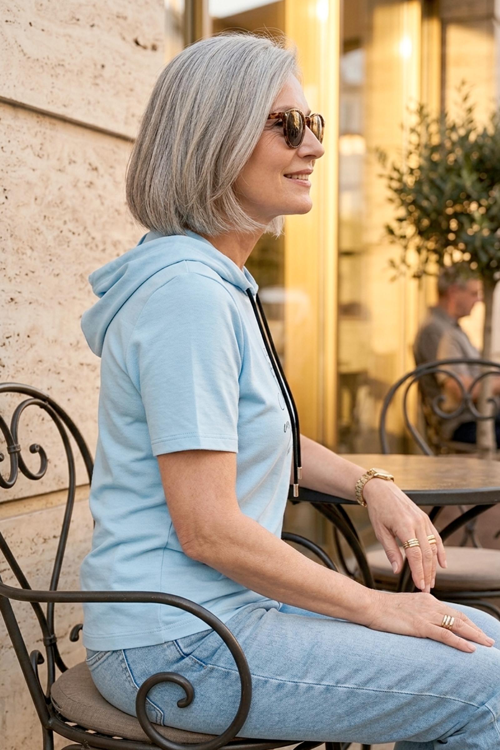 Спортивная футболка Трейси с капюшоном. Ткань Лакоста практична и удобна в повседневной носке. Футболка не мнется, пропускает воздух и максимально комфортна во время прогулок, занятий спортом или домашними делами. Стильная футболка с дизайнерским принтом и регулирующим шнурком выглядят модно и уникально.