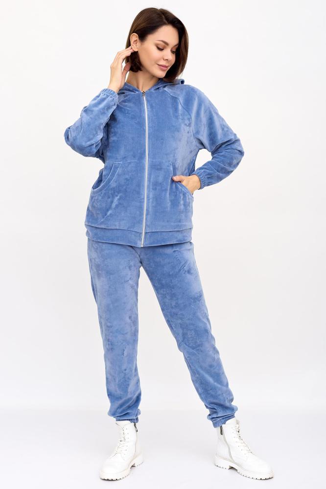 Плюшевый велюровый костюм Шалфей из худи и брюк. Идеально подходит для повседневной носки, костюм мягкий и очень приятный к телу. Худи с капюшоном и кармашками в виде кенгуру добавляют удобство, и модель выглядит шикарно и женственно. Брючки комфортной посадки и длины, с фиксирующими резиночками на поясе и штанинах позволят Вам выглядеть уверенно и стильно. Цветовую гамму Вы можете выбрать сами – романтичный лиловый или благородный бирюзовый.