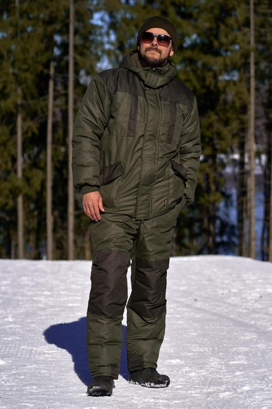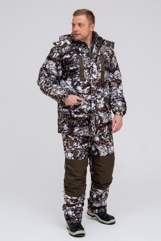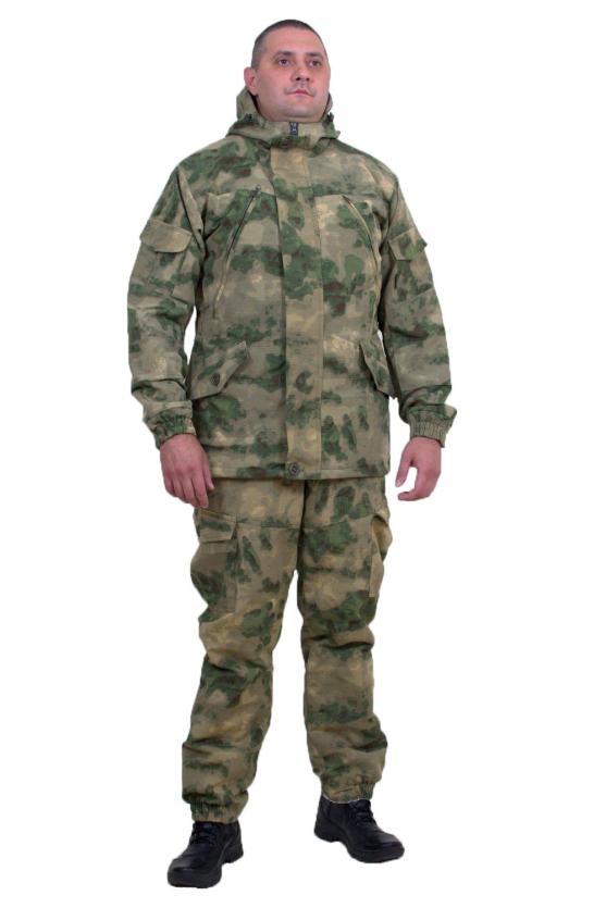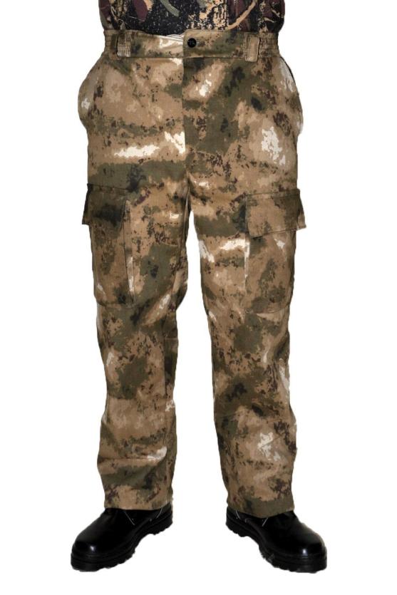 Рабочий камуфляжный костюм. В комплекте рубашка и брюки. Рубашка со стояче-отложным воротником и застёжкой на пуговицы, дополнена накладными карманами. Брюки прямого кроя с карманами.