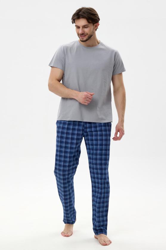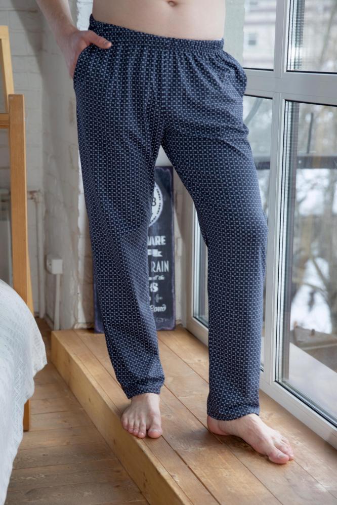 Мужские брюки прямого покроя с карманами. Удобную посадку обеспечивает поясная резинка.