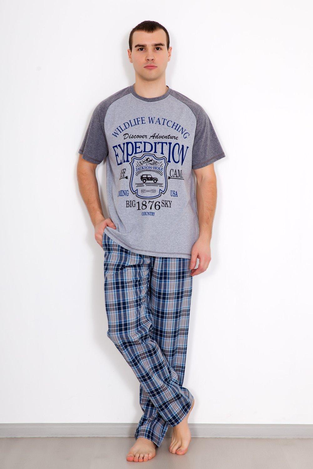 Оригинальный и практичный домашний костюм. В комплекте комбинированная футболка коротким рукавом и брюки. Футболка прямого кроя с оригинальными принтом. Брюки прямые с рисунком в клетку. Удобную посадку обеспечивает поясная резинка. Брюки с карманами.