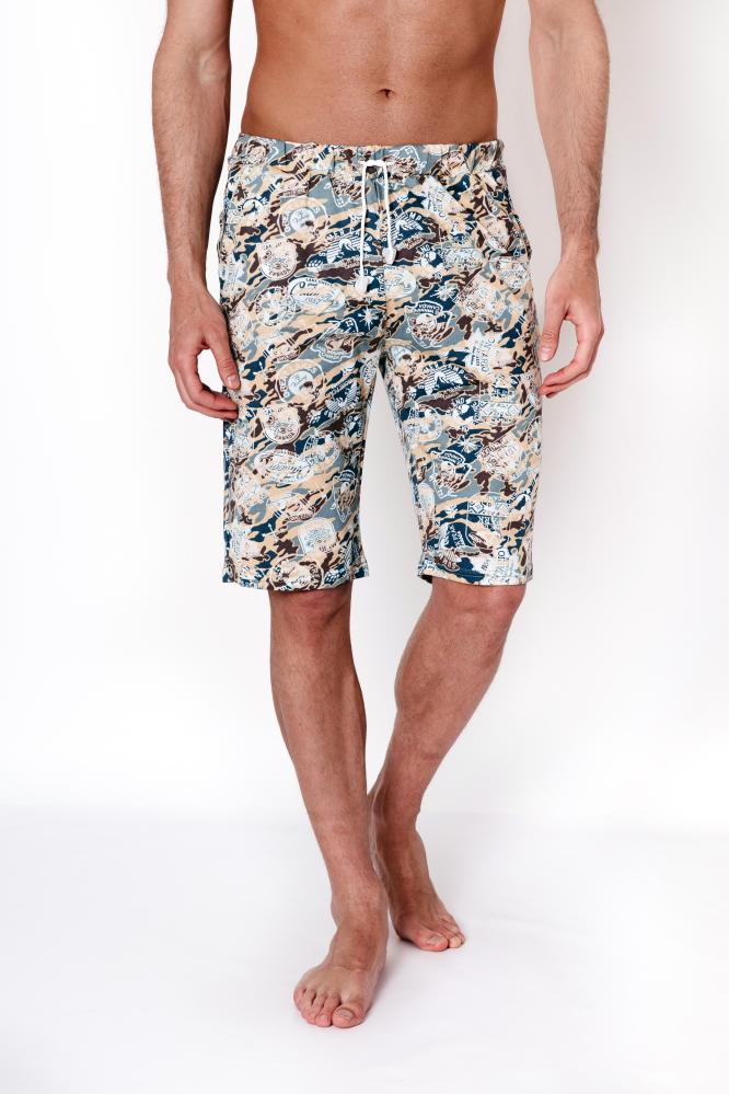 Пляжные мужские шорты из 100%хлопка. Шорты прямого кроя, достаточно свободные, с двумя карманами. Пояс на резинке со вставленным шнурком. Шнурок позволяет фиксировать шорты на талии. Практичные шорты прекрасно подходят как для отдыха, так и для дома.
