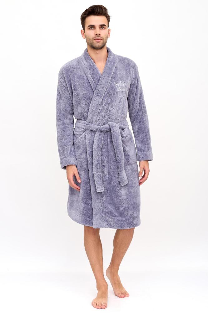 Мужской халат с поясом на запах. Длина изделия ниже колена, с двумя удобными карманами, рукав длинный. Приятный к телу халат окутает своим теплом и подарит хорошее настроение каждому «Королю». На полочке выбит соответствующий принт «Король».