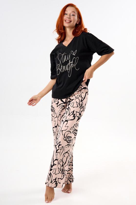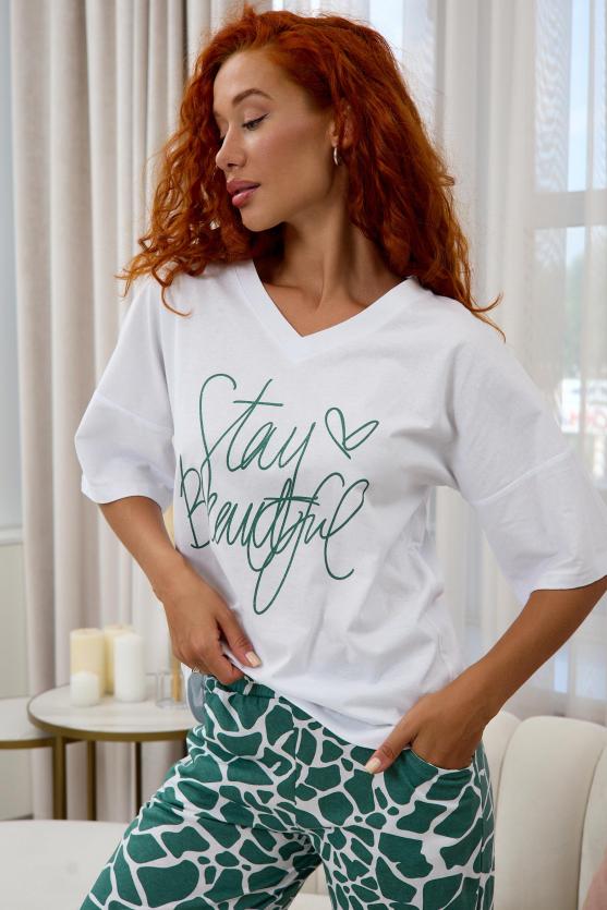 Голубая романтическая пижама Зайка придется по вкусу юным девушкам, и всем кто молод душой. Удобная однотонная маечка с тонкими бретелями с застежкой-обманкой прекрасно сочетается с широкими короткими шортами в нежную тонкую клетку.