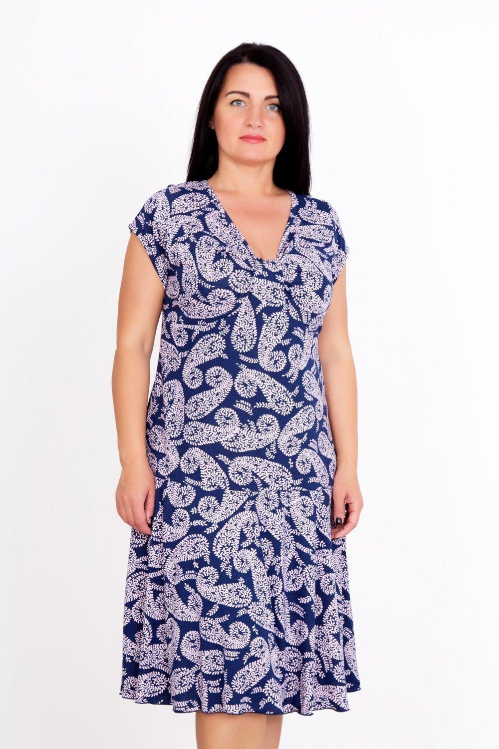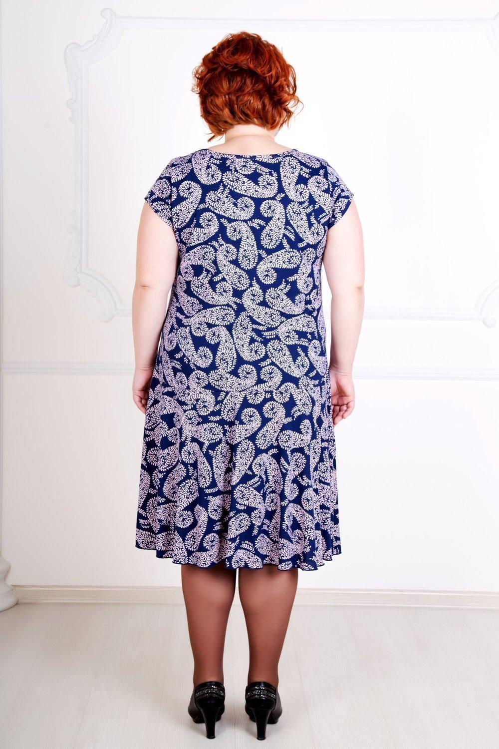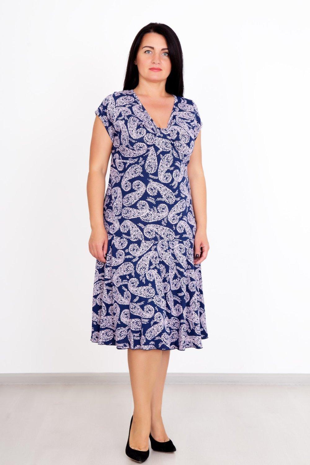 Нужно платье для обладательницы пышных форм? Предлагаем вам интересную модель «Прелесть». Платье с V-образным вырезом, длина на ладонь ниже колена. Заниженная талия позволяет «вытянуть» силуэт, визуально сделать вас стройнее. Насыщенный цветочный орнамент привлекает внимание и подчеркивает легкость образа.