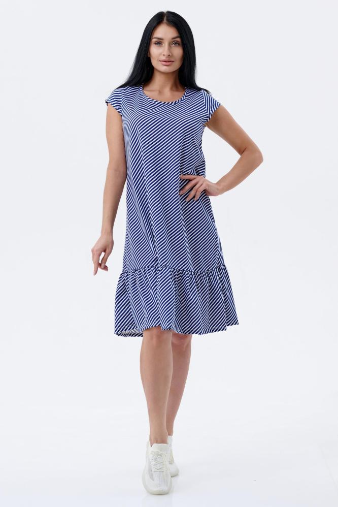 Летнее платье Александра с ярким принтом. Удобный пошив придаст комфорт и уверенность во время прогулок в жаркое время года. Модель А-силуэта, с коротким рукавом, понизу украшена красивой юбочкой. Платье станет украшением любой девушки.