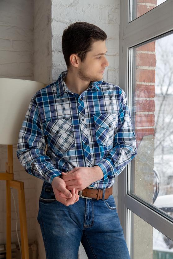 Рубашка мужская в клетку. Модель с прямым кроем, отложным воротником, длинными рукавами. Эта рубашка создаст модный повседневный образ и подарит удобство на весь день. Рубашка удачно садится на любой тип фигуры, выполнена из высококачественного хлопка, благодаря этому ткань тонкая, дышащая, приятная на ощупь.