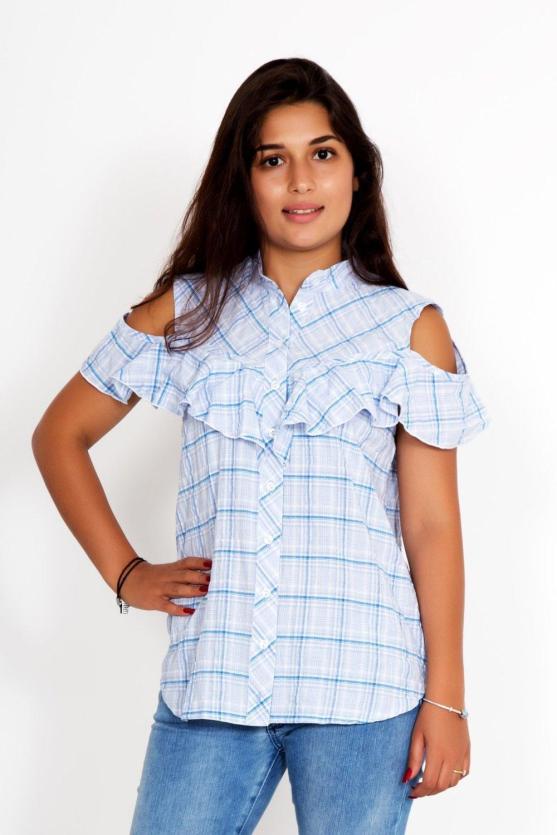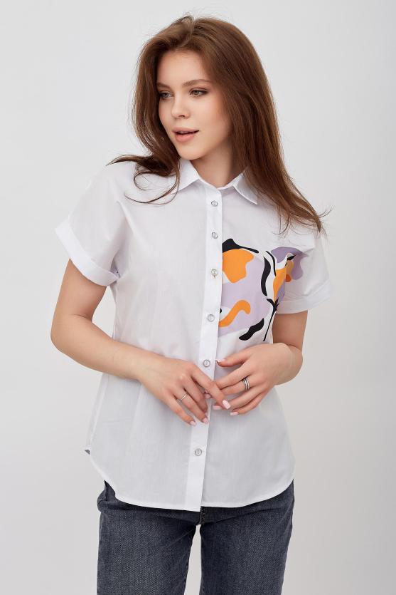 Изящная рубашка приталенного кроя. Модель с кружевными вставками, которые красиво подчёркивают плечи. В такой рубашке можно отправиться на работу в офис или покорять сердца на свиданиях.