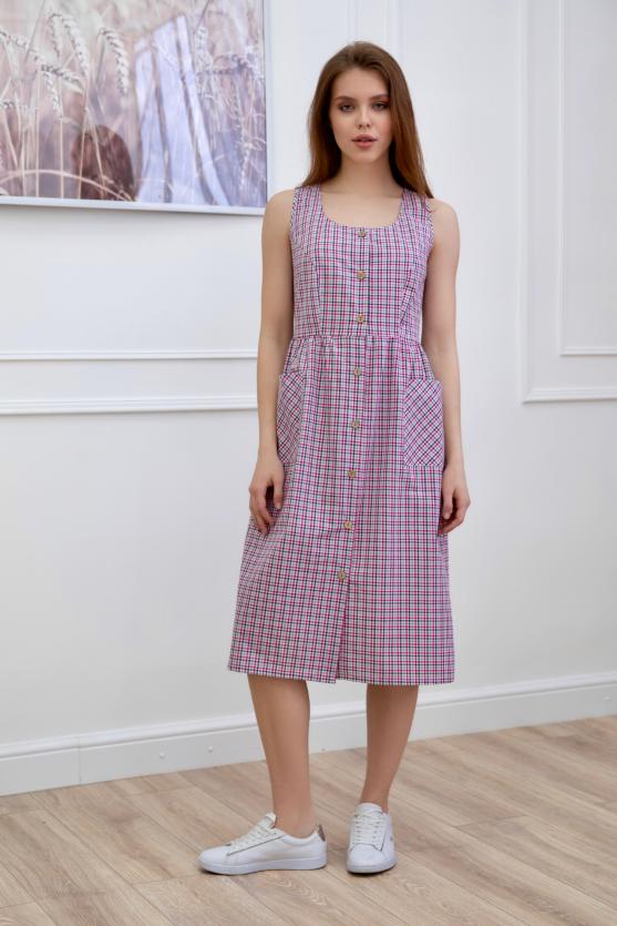 Отличный летний сарафан прекрасно подчеркнёт вашу индивидуальность. Сарафан свободного кроя с функциональной кулисой на шнурке, позволяющий регулировать высоту посадки и ослаблять объём талии для особого комфорта. Отдельное внимание забирают выполненные оригинальным образом детали бретель и карманов. Так же выполнена отделка из декоративных пуговиц по планке. Сарафан представлен в двух нежных оттенках. В данном образе вы будете выглядеть привлекательно.