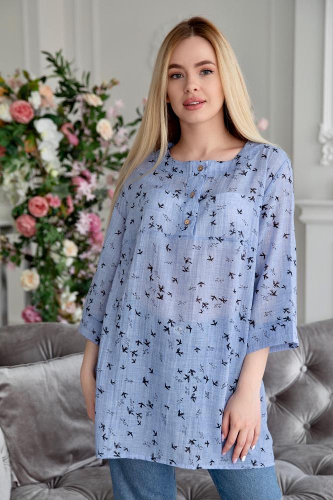 Нежная женская туника выполнена из тонкого и невесомого натурального хлопка, который позволяет чувствовать себя комфортно в летний зной. Модель украшает удобная застежка в виде пуговиц, свободный крой. Туника отлично впишется как в городской, так и в пляжный стиль. Средняя длинна и рукав «три четверти» лучше всего подходят для отдыха.