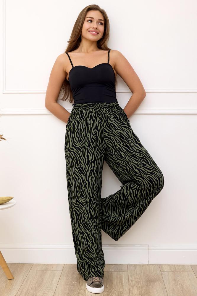 Широкие, легкие брюки Жара с расцветкой в стиле Сафари. Женские брюки отлично сочетаются с вещами базового гардероба. С ними легко создавать крутые, стильные образы на каждый день. Красиво брюки сочетаются с однотонным верхом и красивой летней обувью.